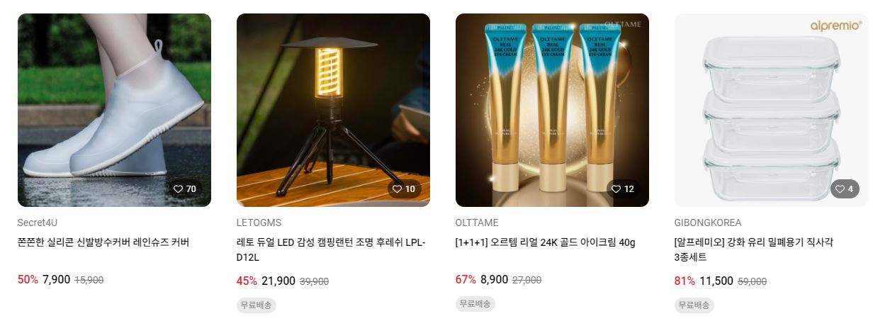 할인 품목 : 이불, 화장품, 캠핑용품 등