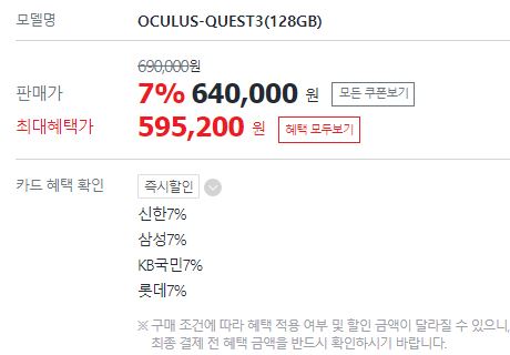 메타 퀘스트3 VR 헤드셋 128GB 할인 정보 [링크]