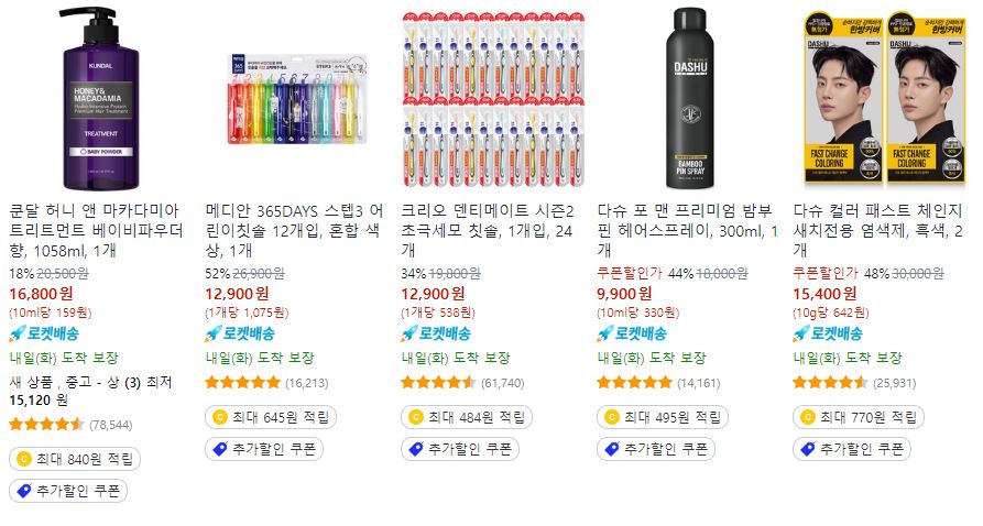 쿠팡 다양한 제품을 할인 판매하네요.