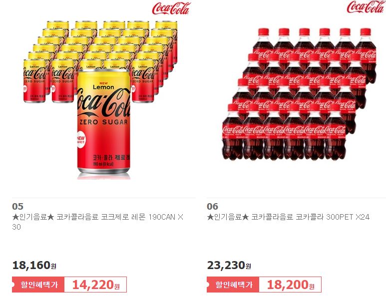 할인 품목 : 코카콜라, 웰치 제로, 비락식혜 등