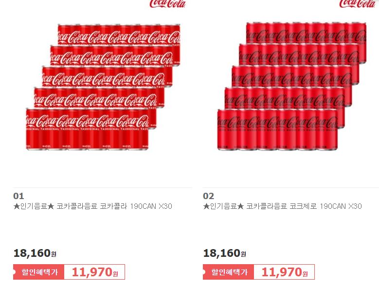 할인 품목 : 코카콜라, 웰치 제로, 비락식혜 등