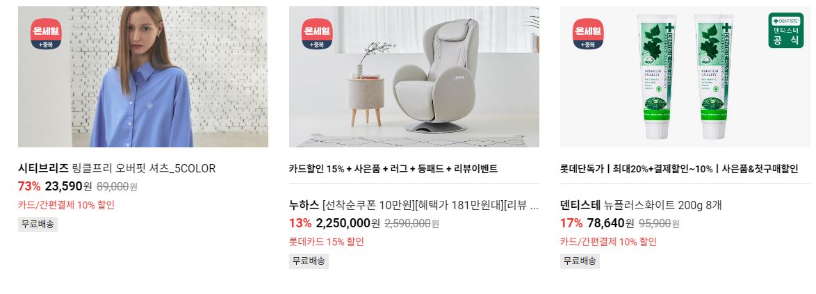 롯데온 다양한 제품을 할인 판매하네요.