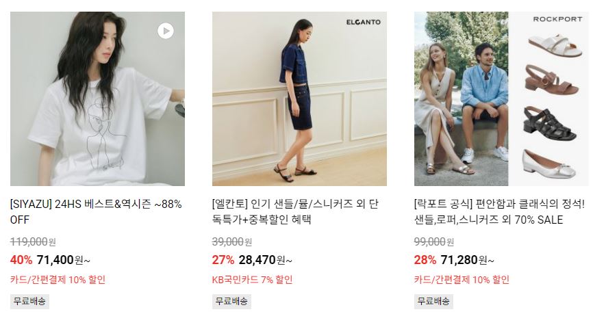 할인 품목 : 의류, 신발, 화장품, 가구 등