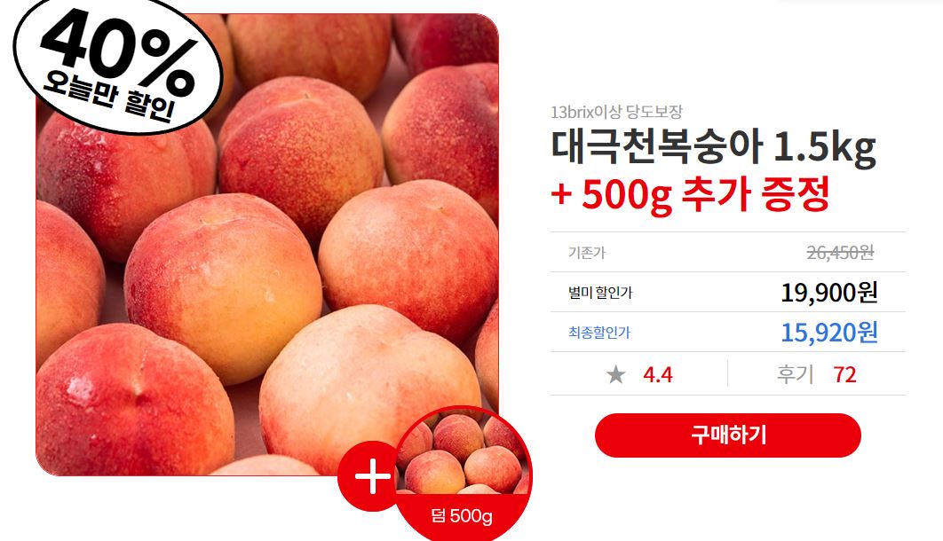 옥션별미 대극천복숭아 1.5KG+500g 할인 정보 [링크]