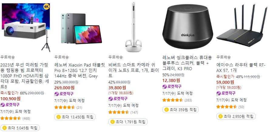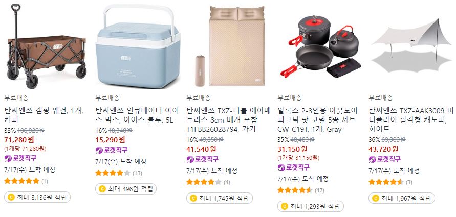 할인 품목 : 마우스, 캡슐커피, 캠핑용품 등