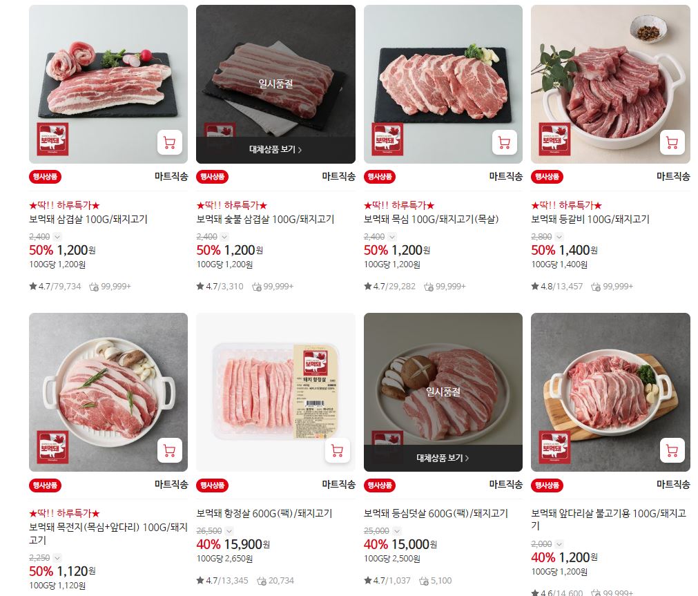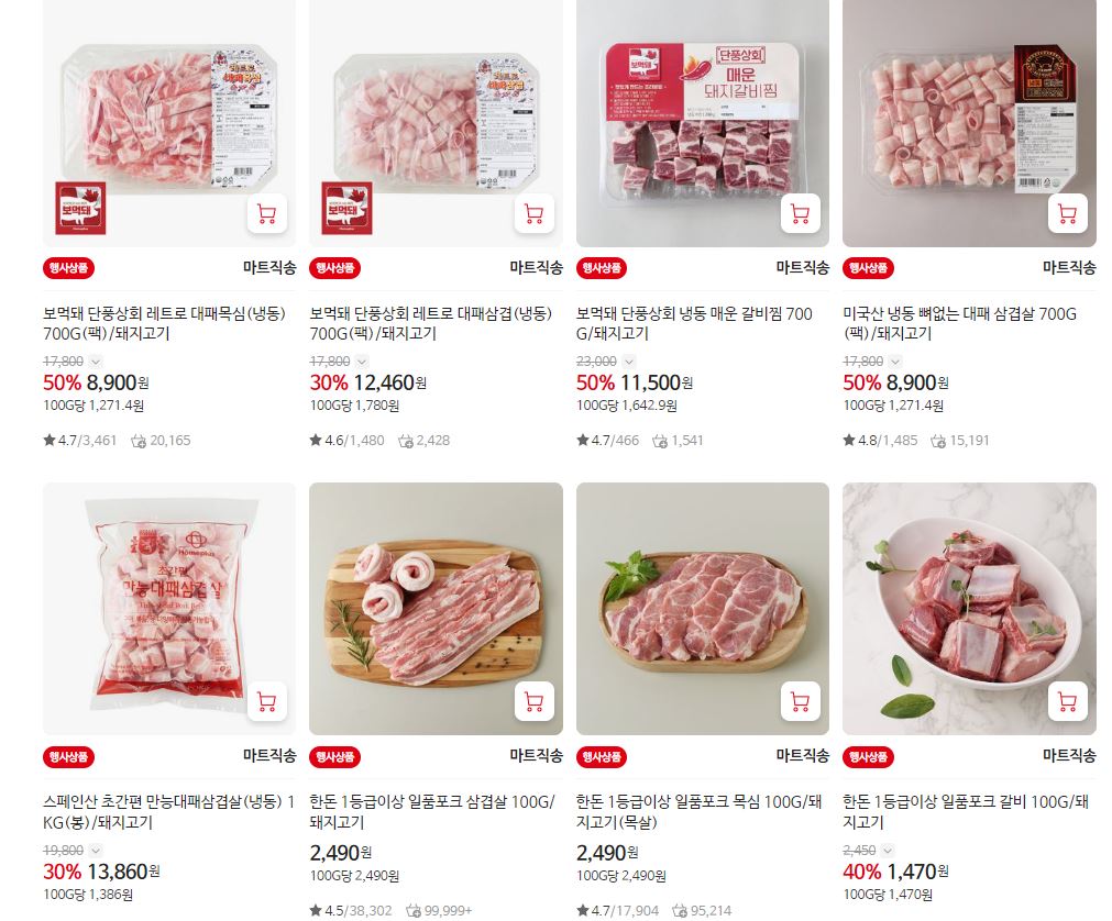할인 품목 : 삼겹살, 목살, 등갈비 등