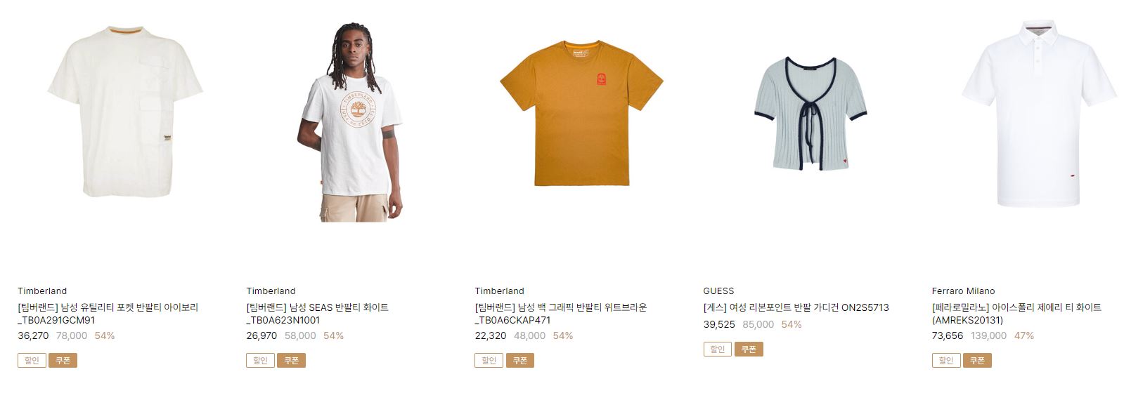 할인 품목 : 티셔츠, 셔츠 등