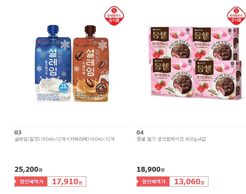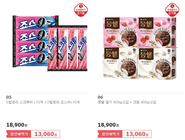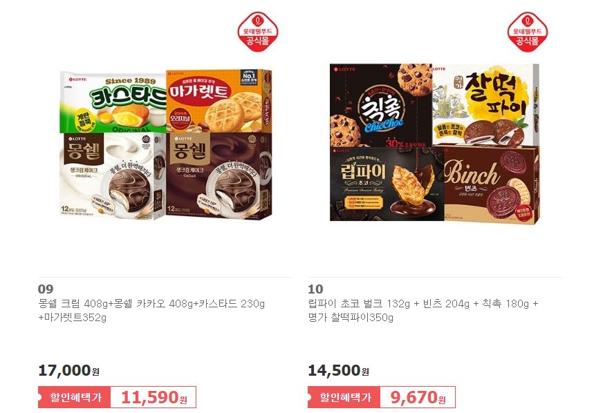 롯데웰푸드 다양한 제품을 할인 판매하네요.