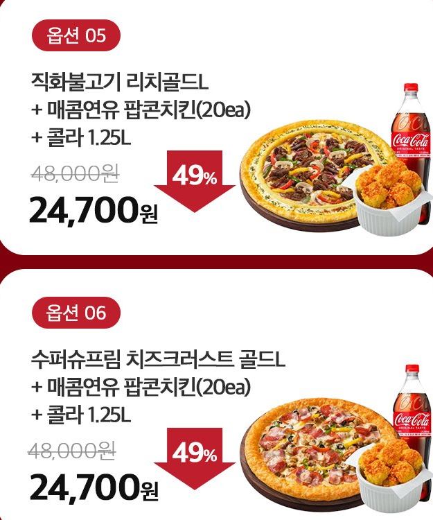 피자헛 다양한 메뉴를 할인 판매하네요.