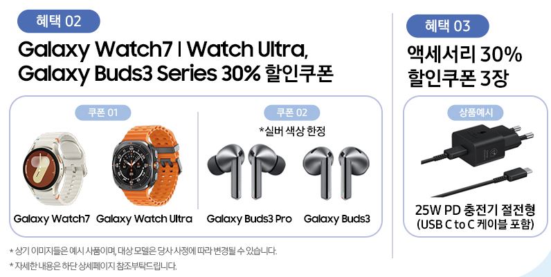 갤럭시 워치 7, 워치 울트라, 버즈3 30% 쿠폰 등