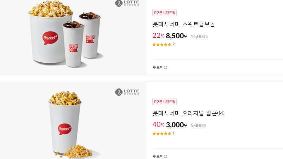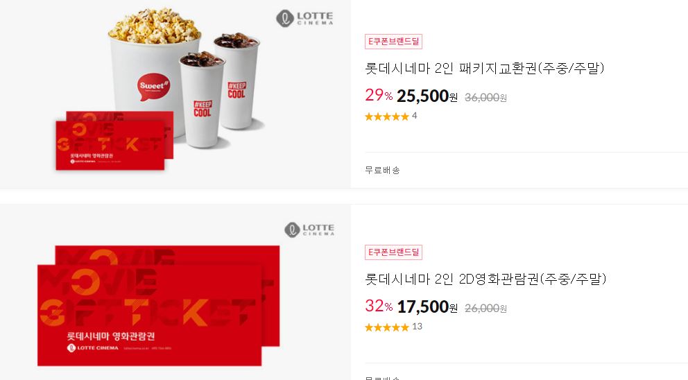 롯데시네마 다양한 제품을 할인 판매하네요.