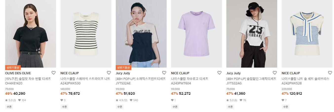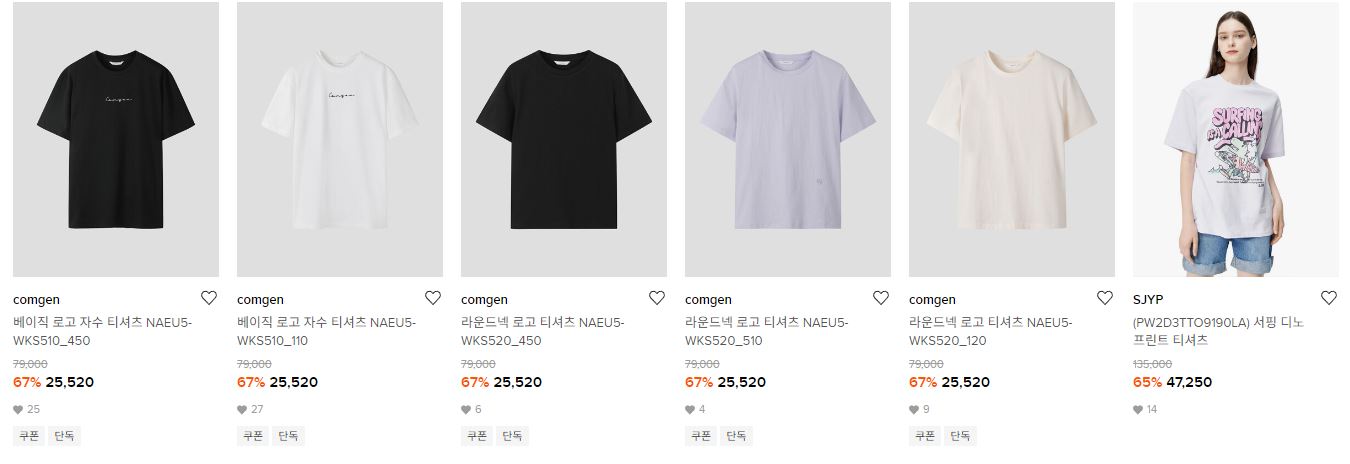 W컨셉 티셔츠 최대 67% 세일 정보 [링크]