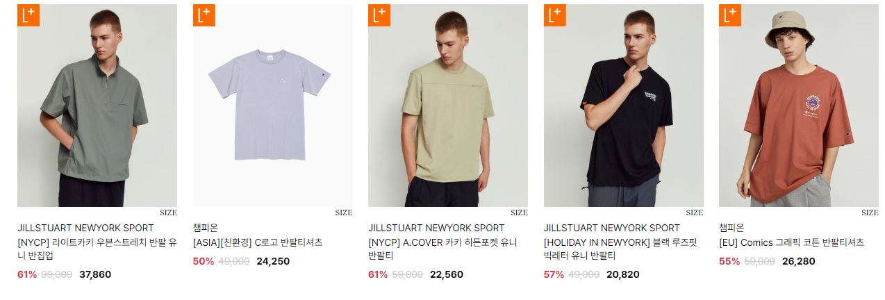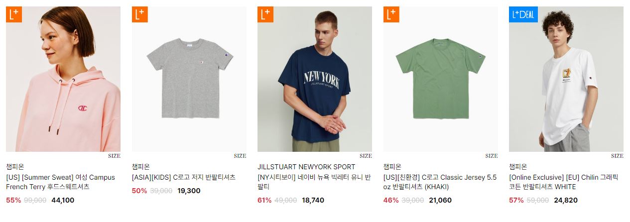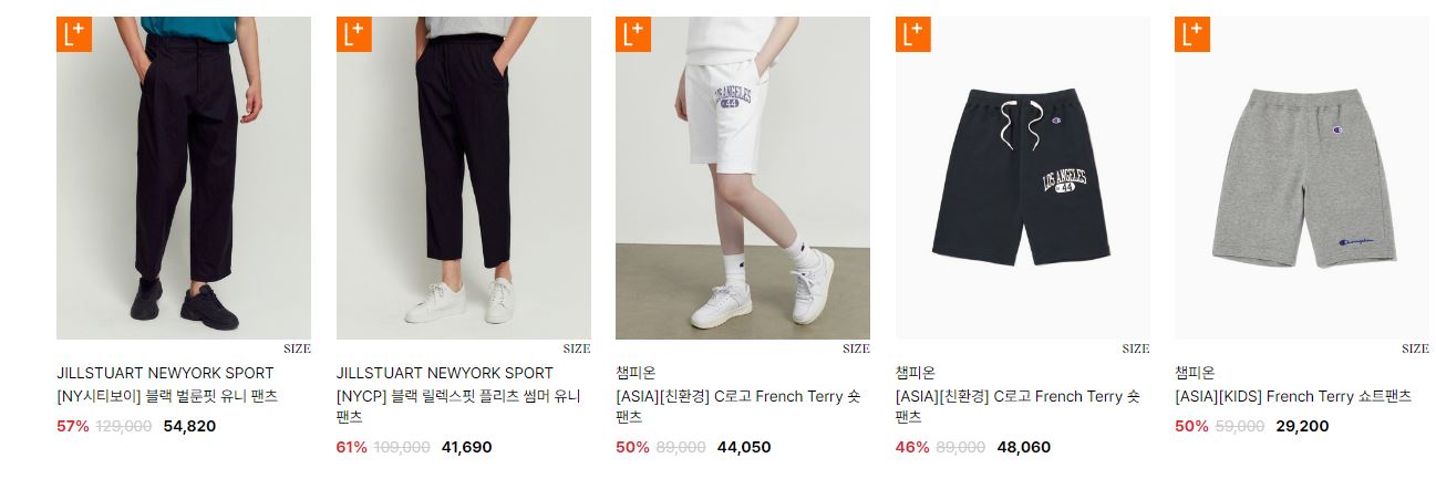 할인 품목 : 티셔츠, 팬츠, 운동화 등