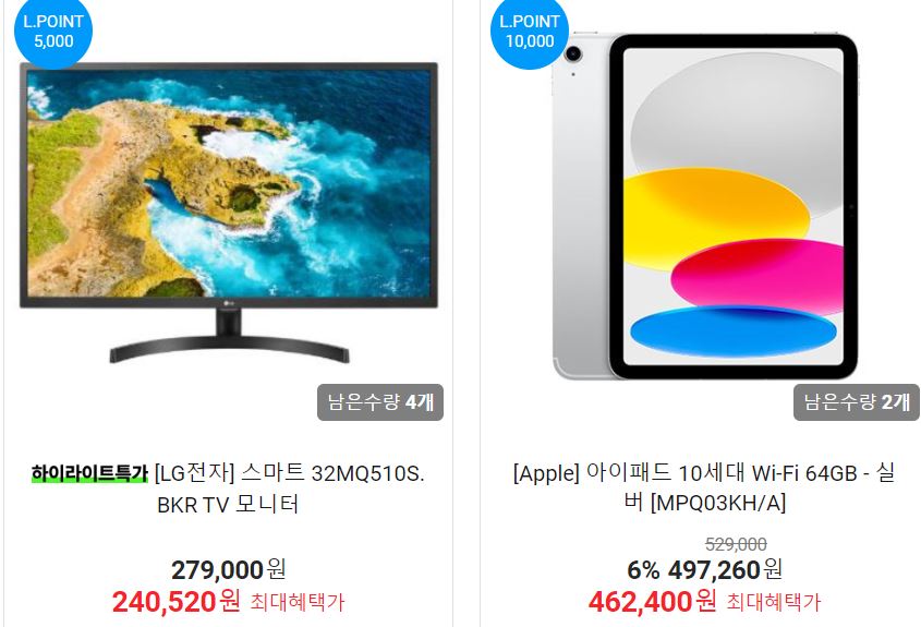 할인 품목 : 아이패드, 이어폰, 티비 등