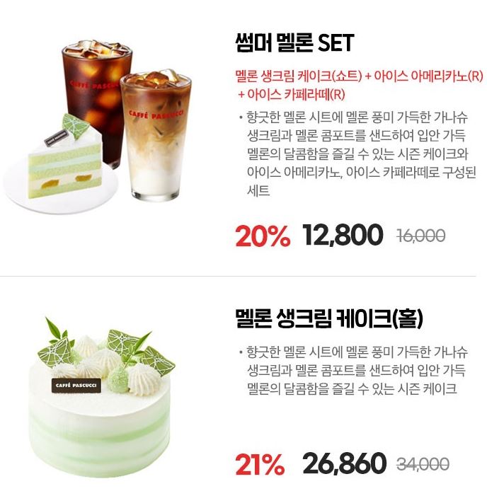 할인 메뉴 : 어메이징 젤라또 세트, 썸머 멜론 세트 등