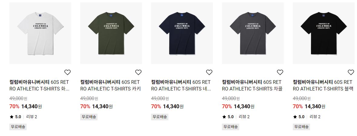 컬럼비아 유니버시티 다양한 제품을 할인 판매하네요.