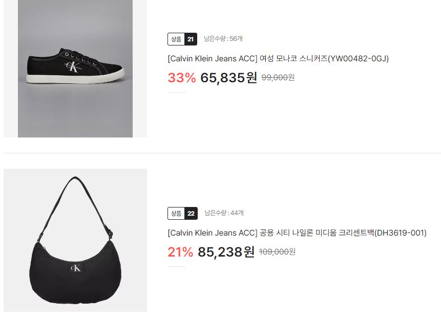캘빈클라인진 다양한 제품을 할인 판매하네요.