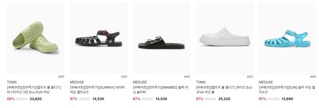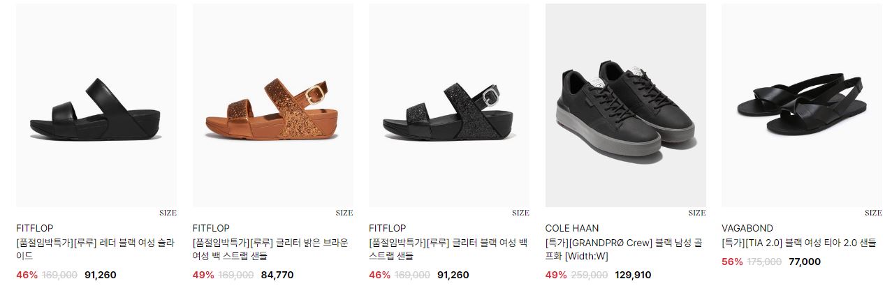할인 품목 : 운동화, 샌들, 구두 등