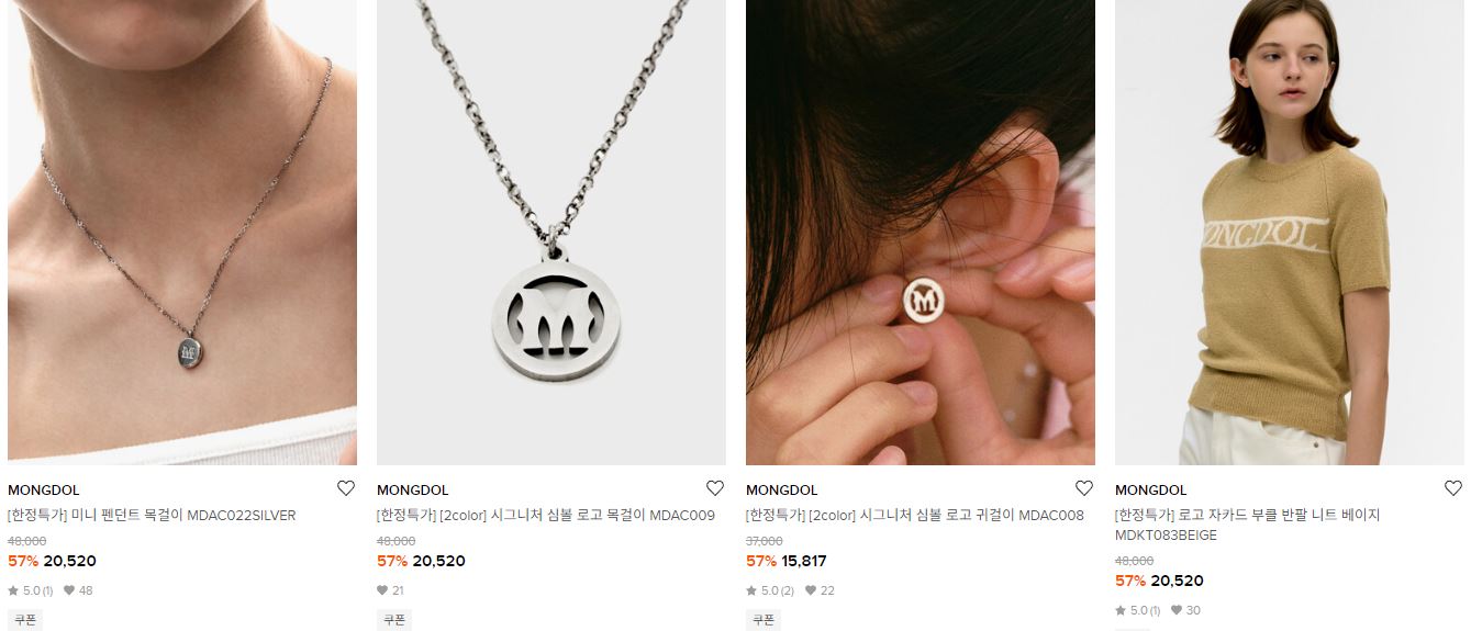 MONGDOL 다양한 제품을 할인 판매하네요.