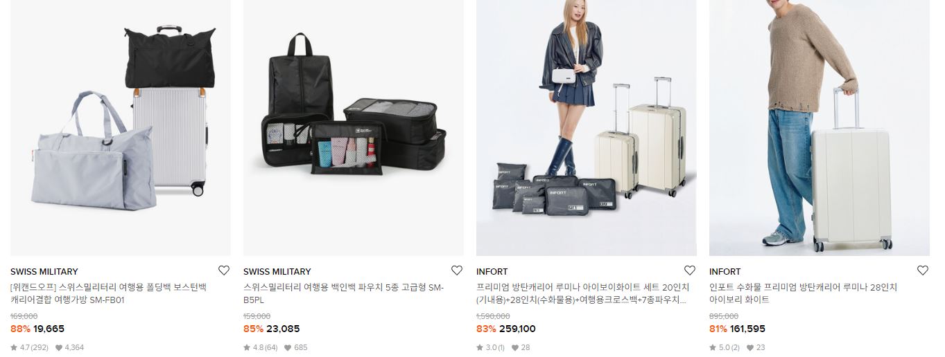 할인 품목 : 캐리어, 의류, 샌들 등