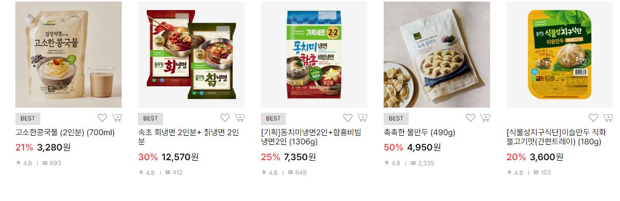 할인 품목 : 만두, 음료, 김 등
