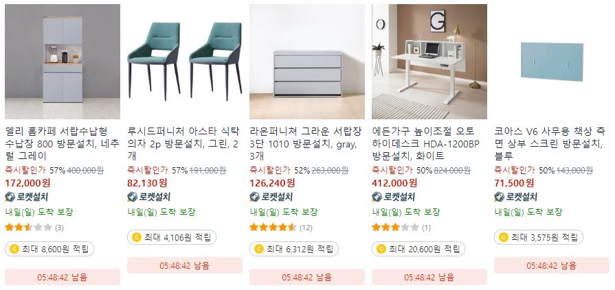 할인 품목 : 의자, 서랍장, 이불 등