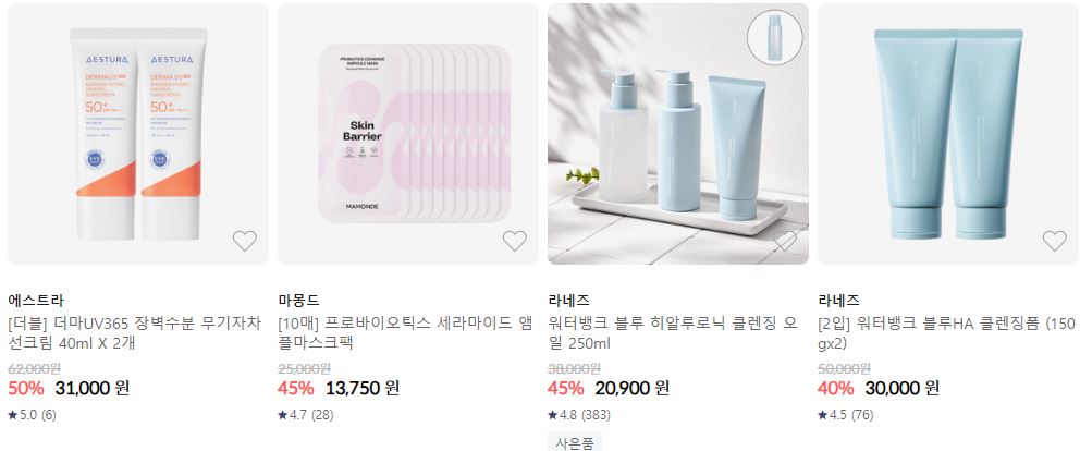 할인 품목 : 선크림, 클렌징폼, 파우더 등