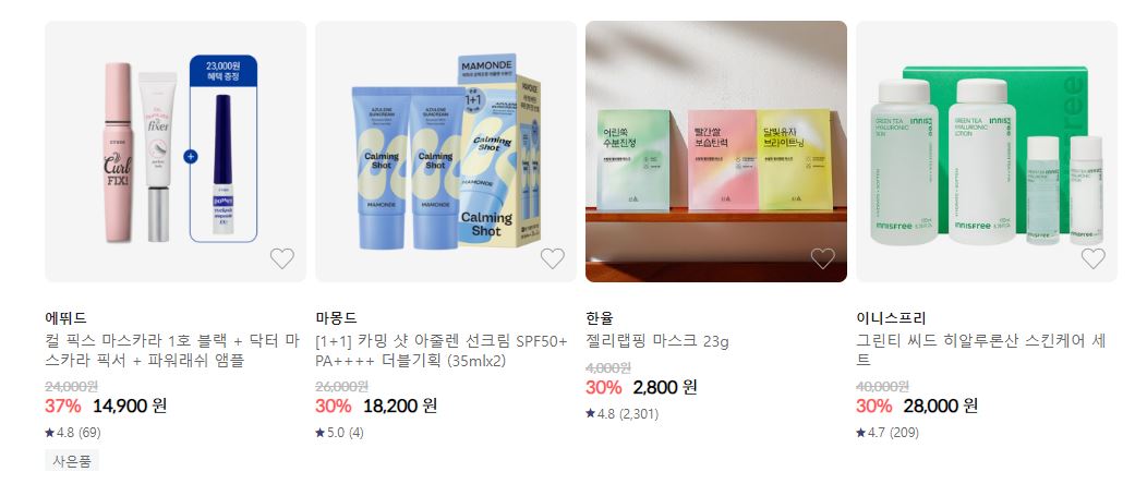 할인 품목 : 선크림, 클렌징폼, 파우더 등