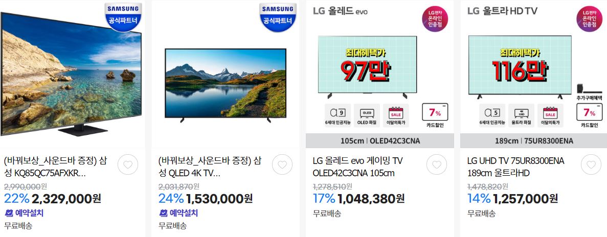 할인 품목 : 티비, 모니터, 선풍기 등