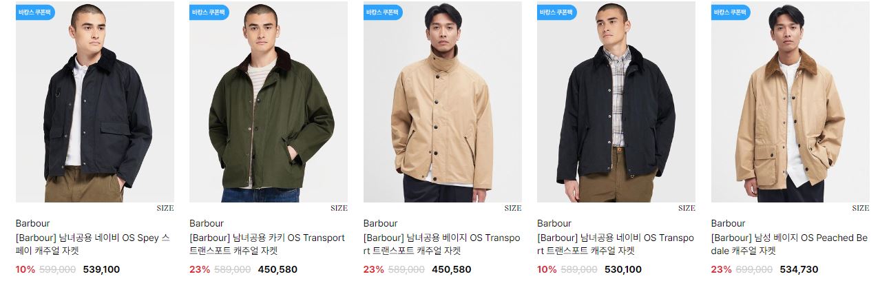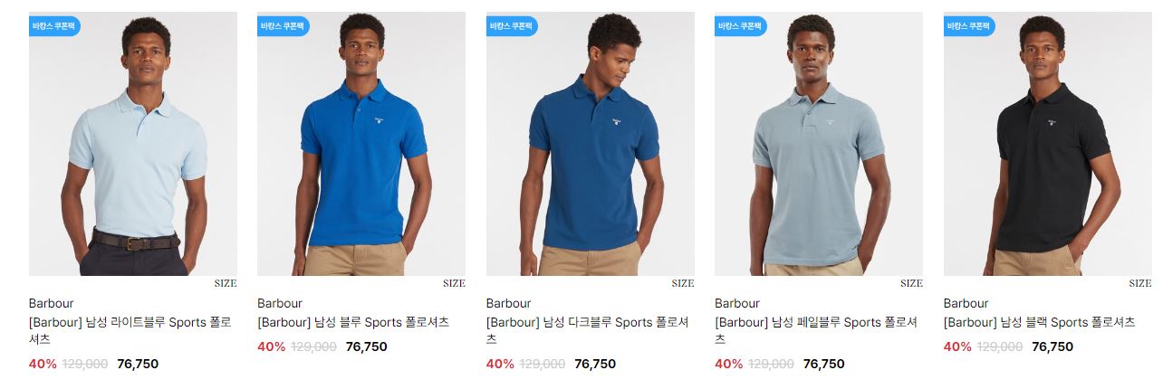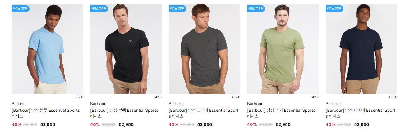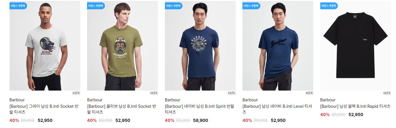 할인 품목 : 티셔츠, 자켓, 팬츠 등
