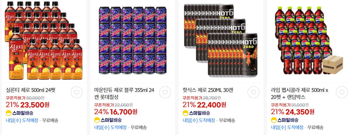 롯데칠성음료 다양한 제품을 할인 판매하네요.