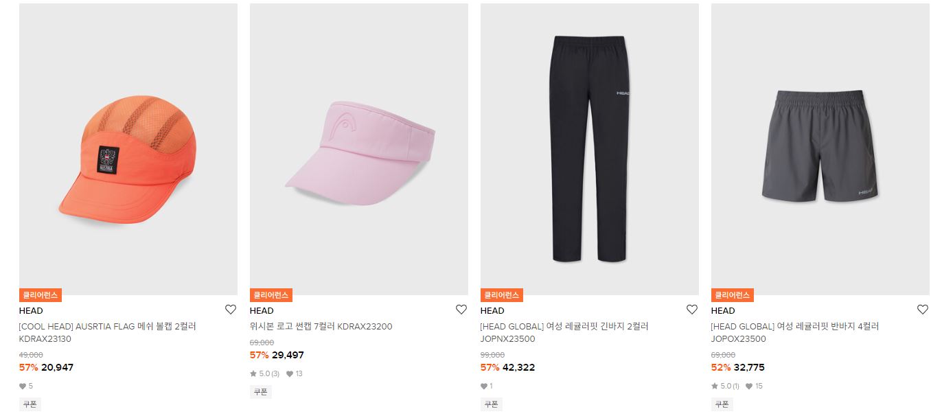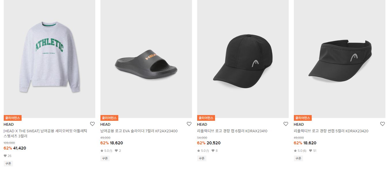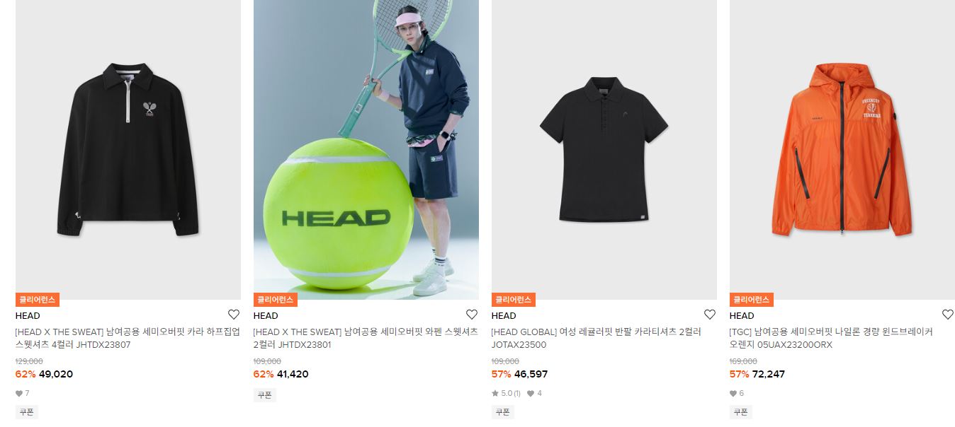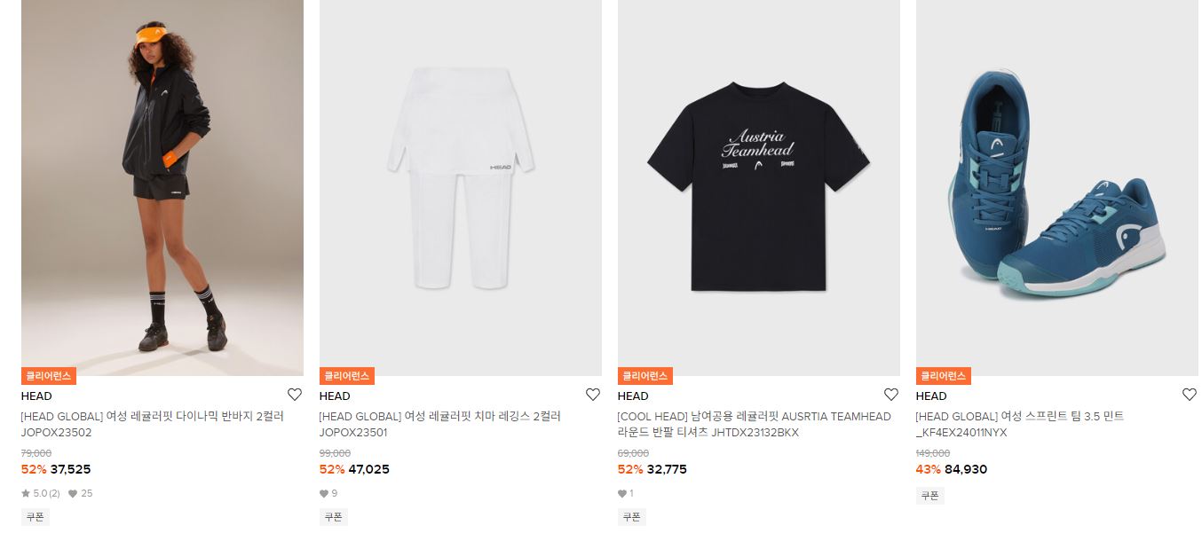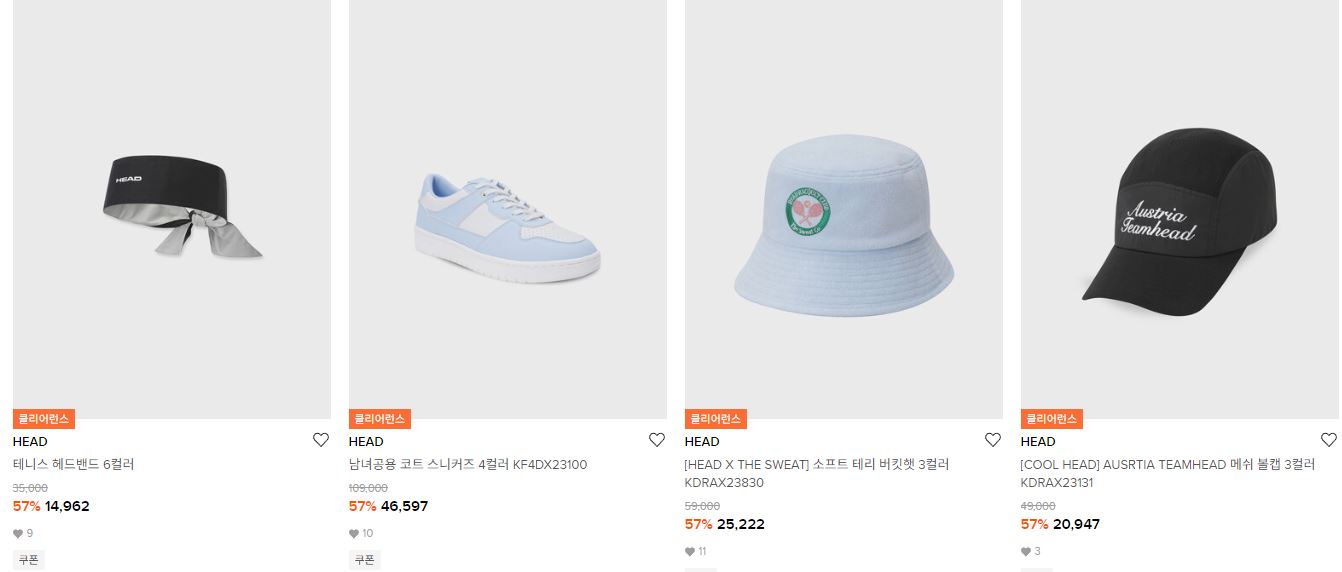 헤드 다양한 제품을 할인 판매하네요.