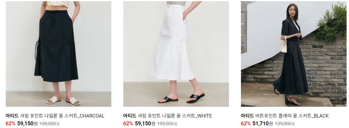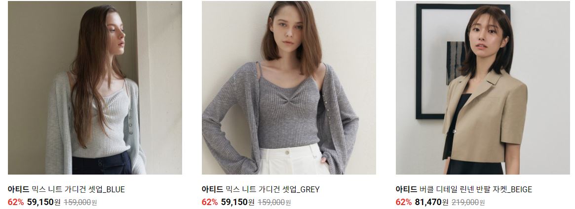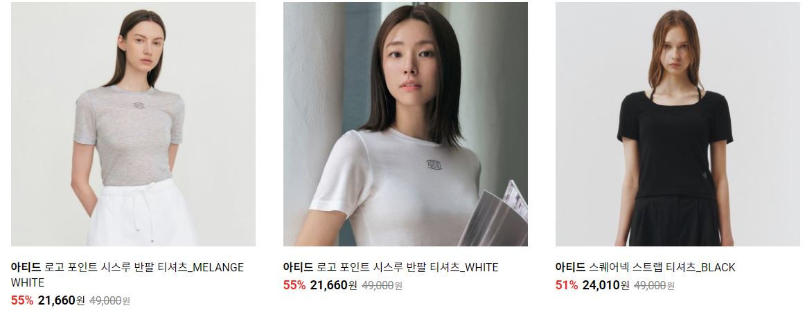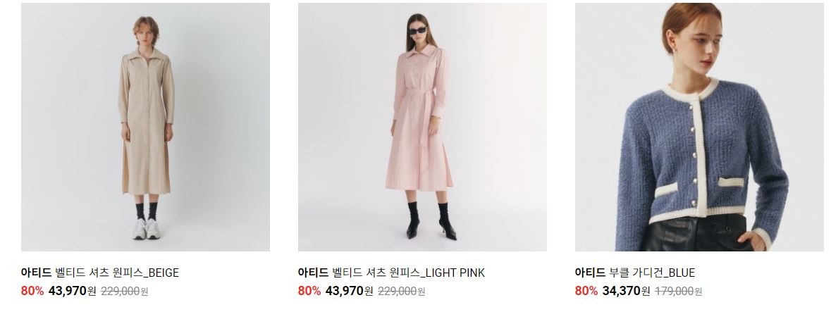 할인 품목 : 티셔츠, 자켓, 원피스 등