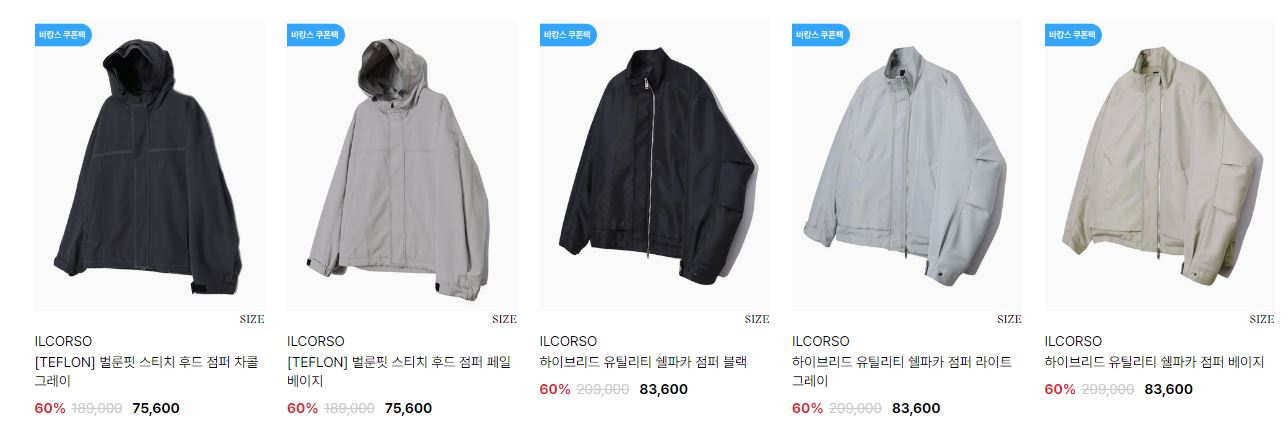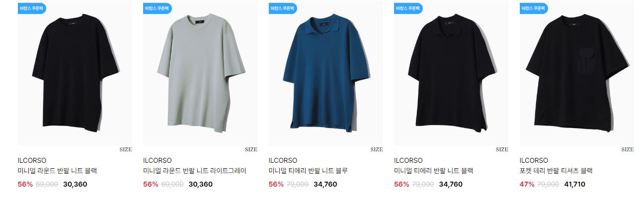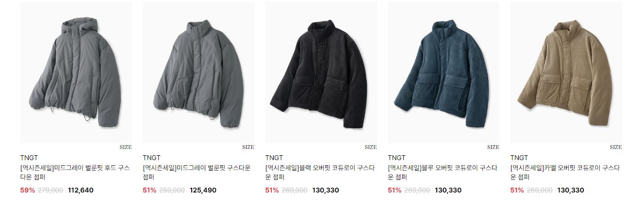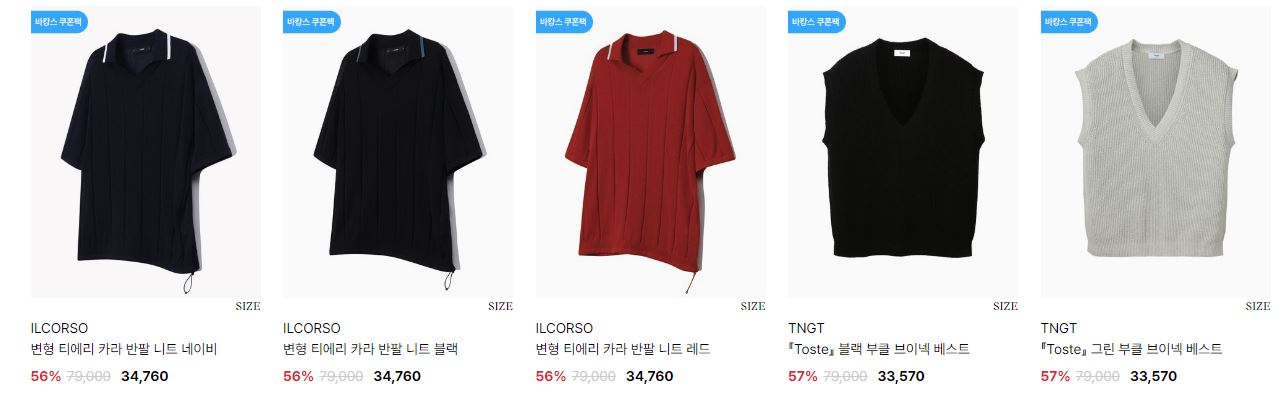 할인 품목 : 자켓, 티셔츠, 니트 등