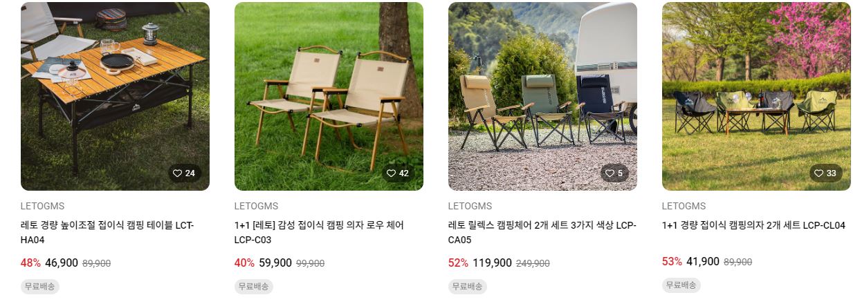 할인 품목 : 의류, 캠핑용품, 가전 등