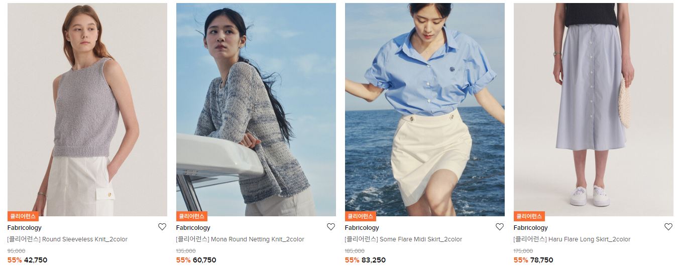 할인 품목 : 니트, 티셔츠, 스커트 등