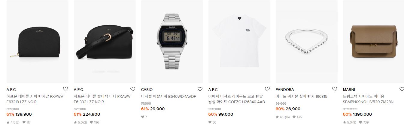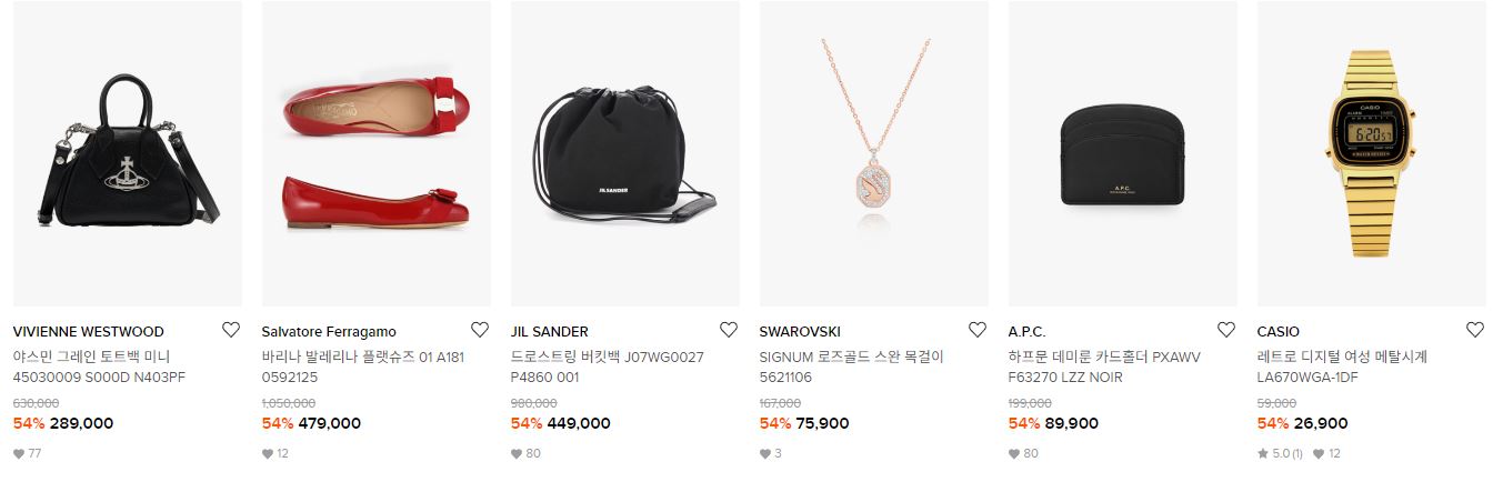 할인 품목 : 의류, 가방, 시계 등