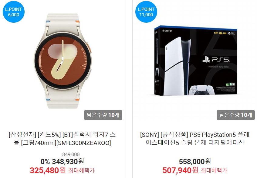 할인 품목 : 게임기, 휴대폰, 소파 등