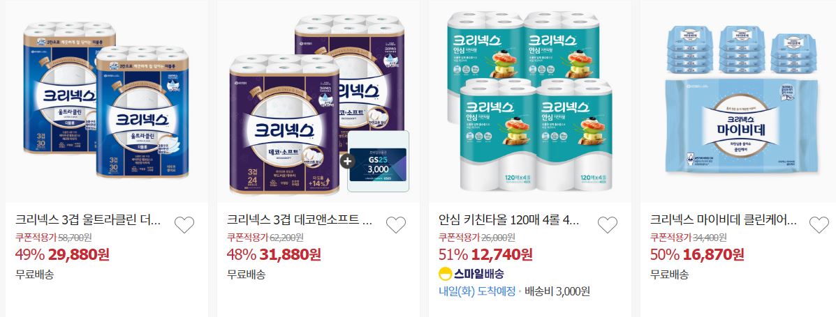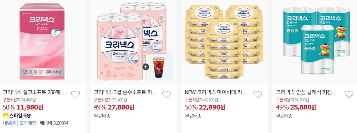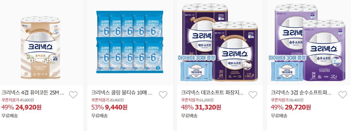 유한킴벌리 다양한 제품을 할인 판매하네요.