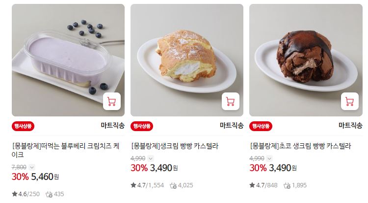 할인 품목 : 쿠키, 카스텔라, 찰빵 등