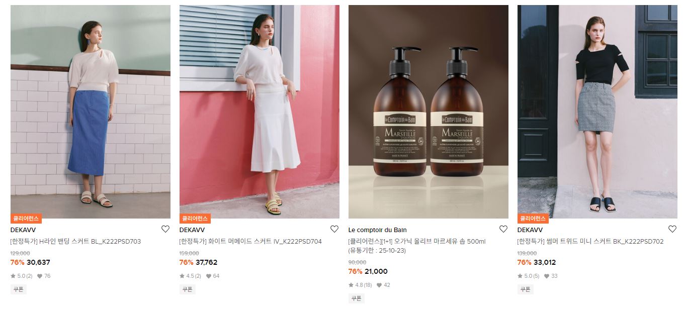 W컨셉 다양한 제품을 할인 판매하네요.