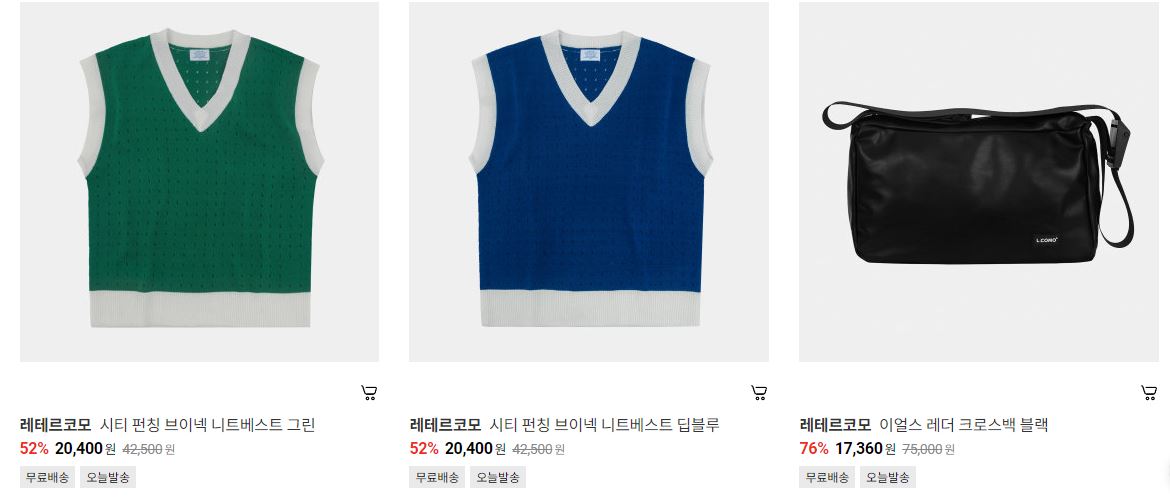 레테르코모 다양한 제품을 할인 판매하네요.