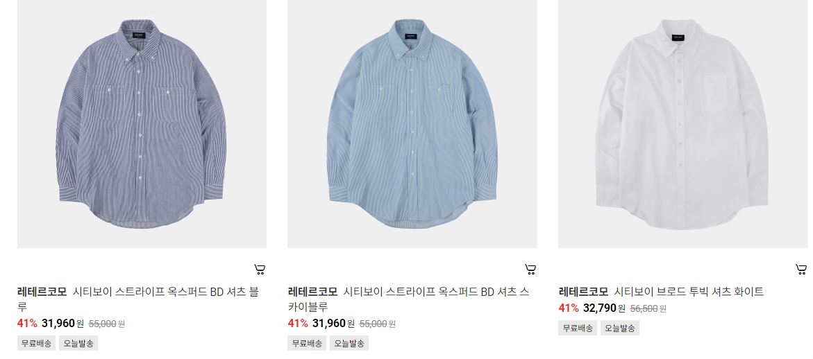 할인 품목 : 티셔츠, 셔츠, 자켓 등