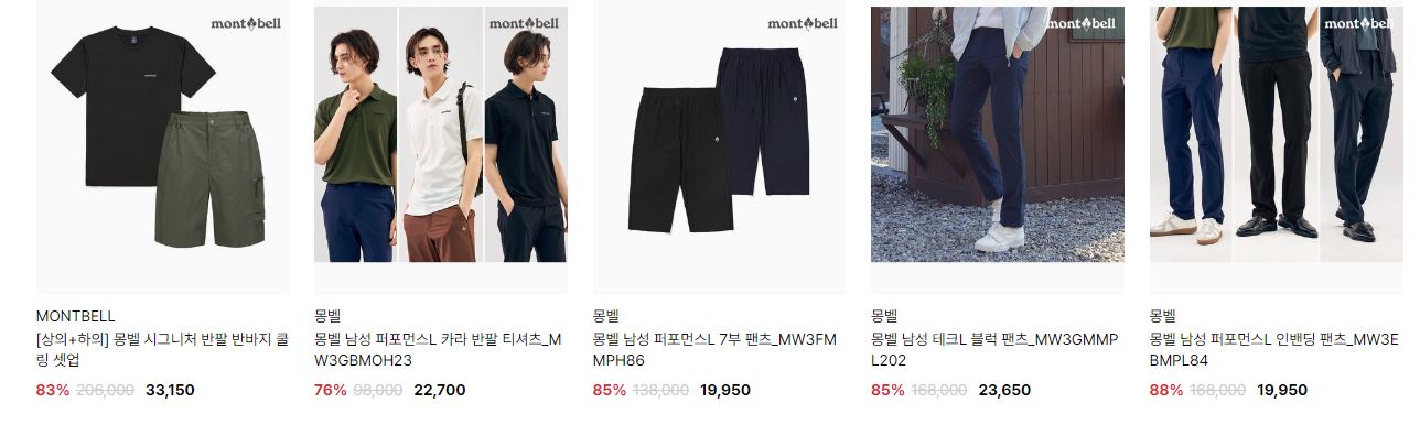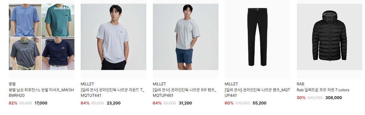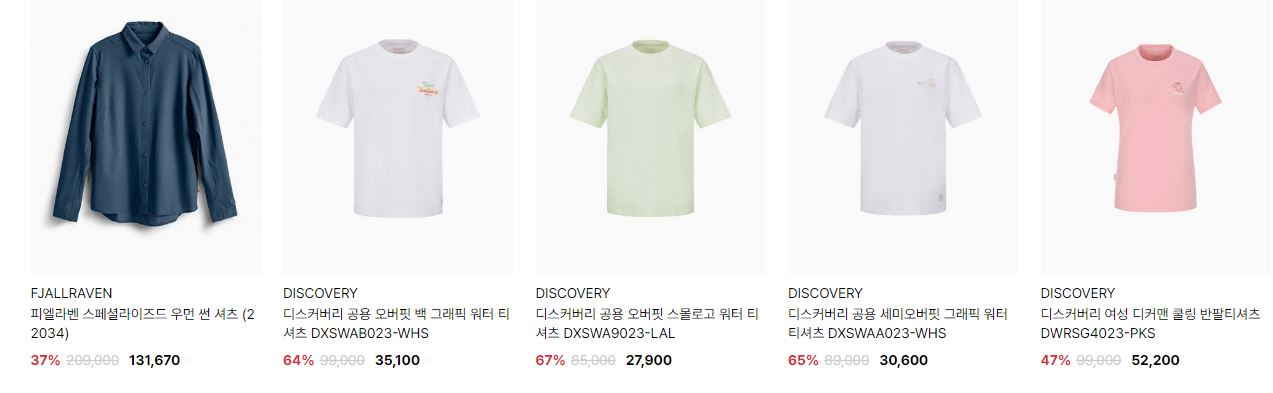 할인 품목 : 티셔츠, 팬츠, 점퍼 등