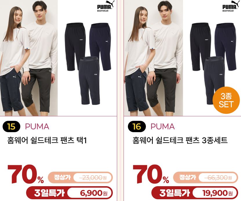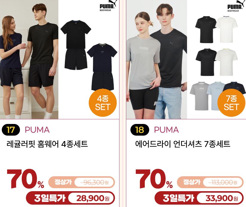 푸마/리복/아디다스 외 이너웨어 세일 정보 포스팅입니다.
