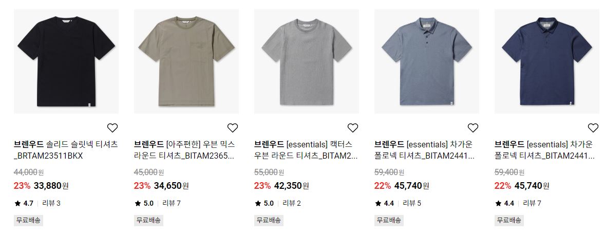 할인 품목 : 티셔츠, 팬츠, 자켓 등
