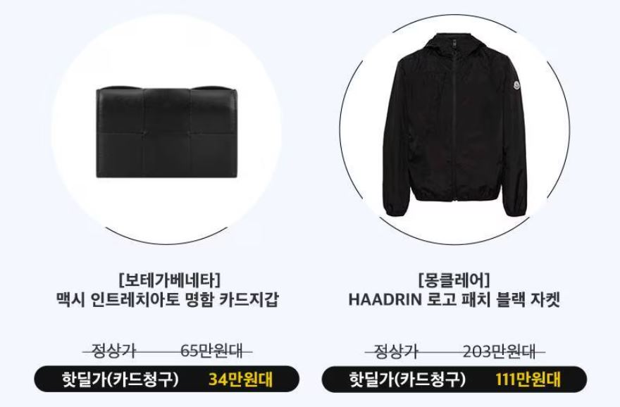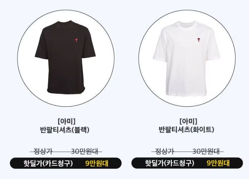할인 품목 : 가방, 지갑, 티셔츠 등