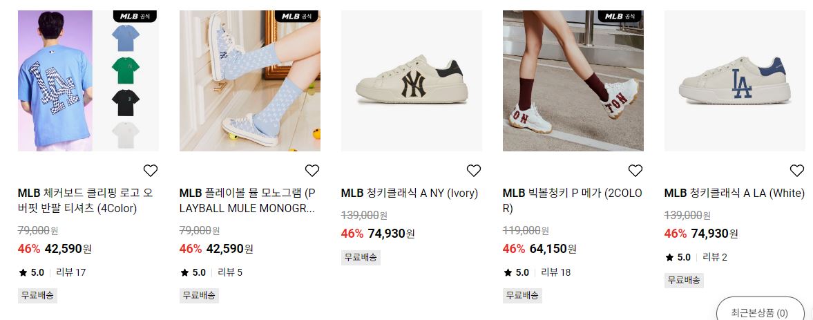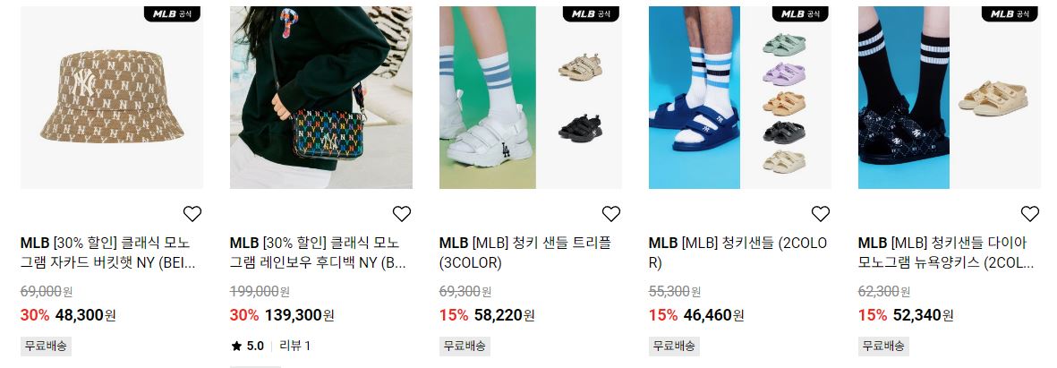 MLB 다양한 제품을 할인 판매하네요.