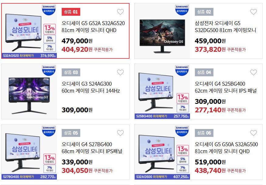 할인 품목 : 오디세이 G5, 오디세이 네오 G7 등