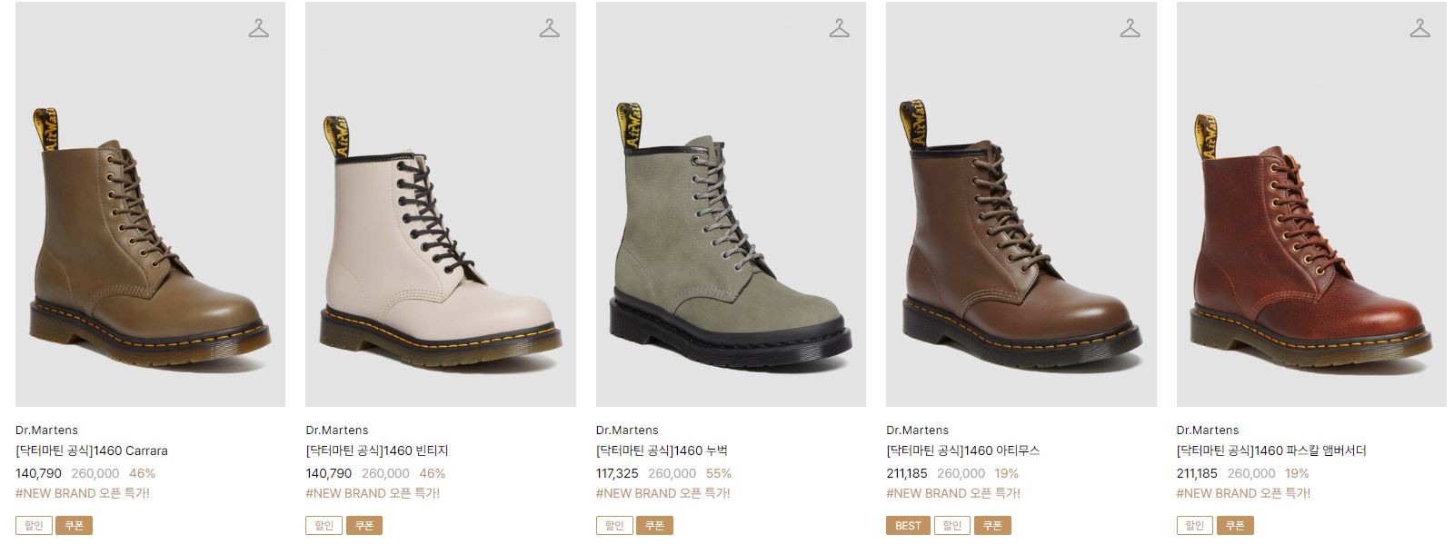 닥터마틴 다양한 제품을 할인 판매하네요.